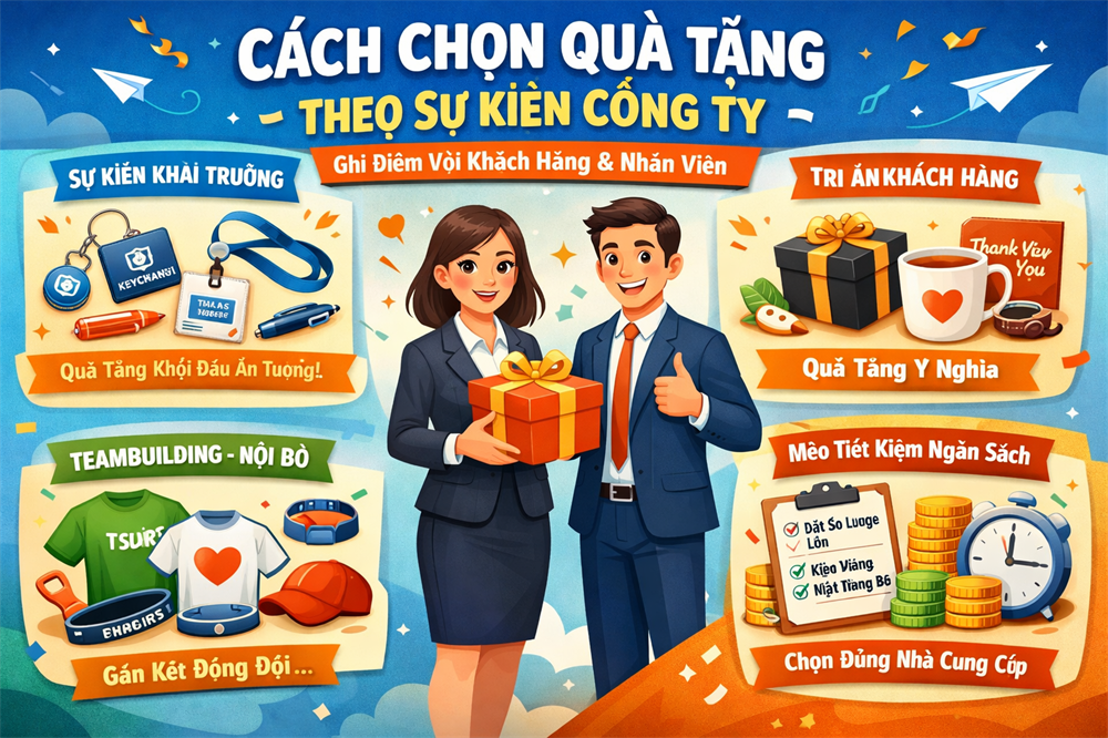 Chọn quà tặng theo sự kiện công ty là một chiến lược quan trọng trong xây dựng thương hiệu. Khi hiểu rõ mục tiêu sự kiện, đối tượng nhận quà và ngân sách, bạn sẽ dễ dàng tìm được sản phẩm phù hợp.